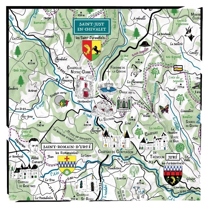 Cette réalisation unique composée d’une cinquantaine de dessins tous réalisés à la main en format vectoriel haute qualité, de plusieurs dizaines d’heures de recherches cartographique et de prises photos.