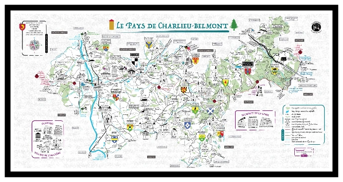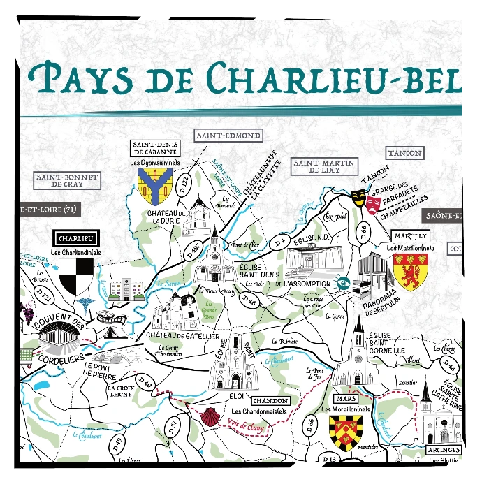 Un fleuve majestueux et un canal à l'Ouest, des forêts denses de conifères sur les crêtes orientales et des villages parsemés de châteaux et d'abbayes entre les deux et notamment Charlieu, village de caractère.