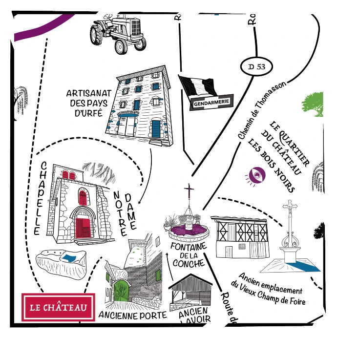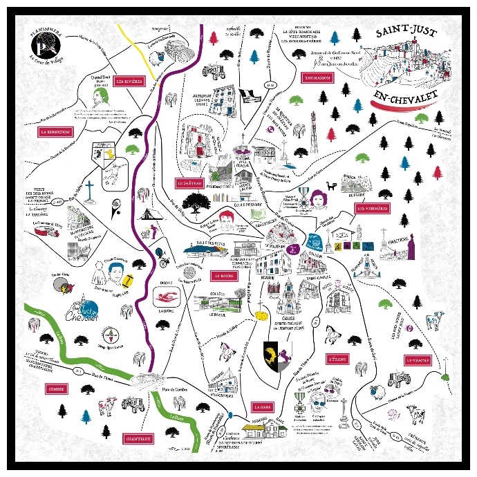 Flânez et laissez votre regard se perdre dans les multiples détails qui se cachent dans celle-ci... J’espère que vous prendrez autant de plaisir à (re)découvrir Saint-Just que j’en ai eu à réaliser cette carte.
